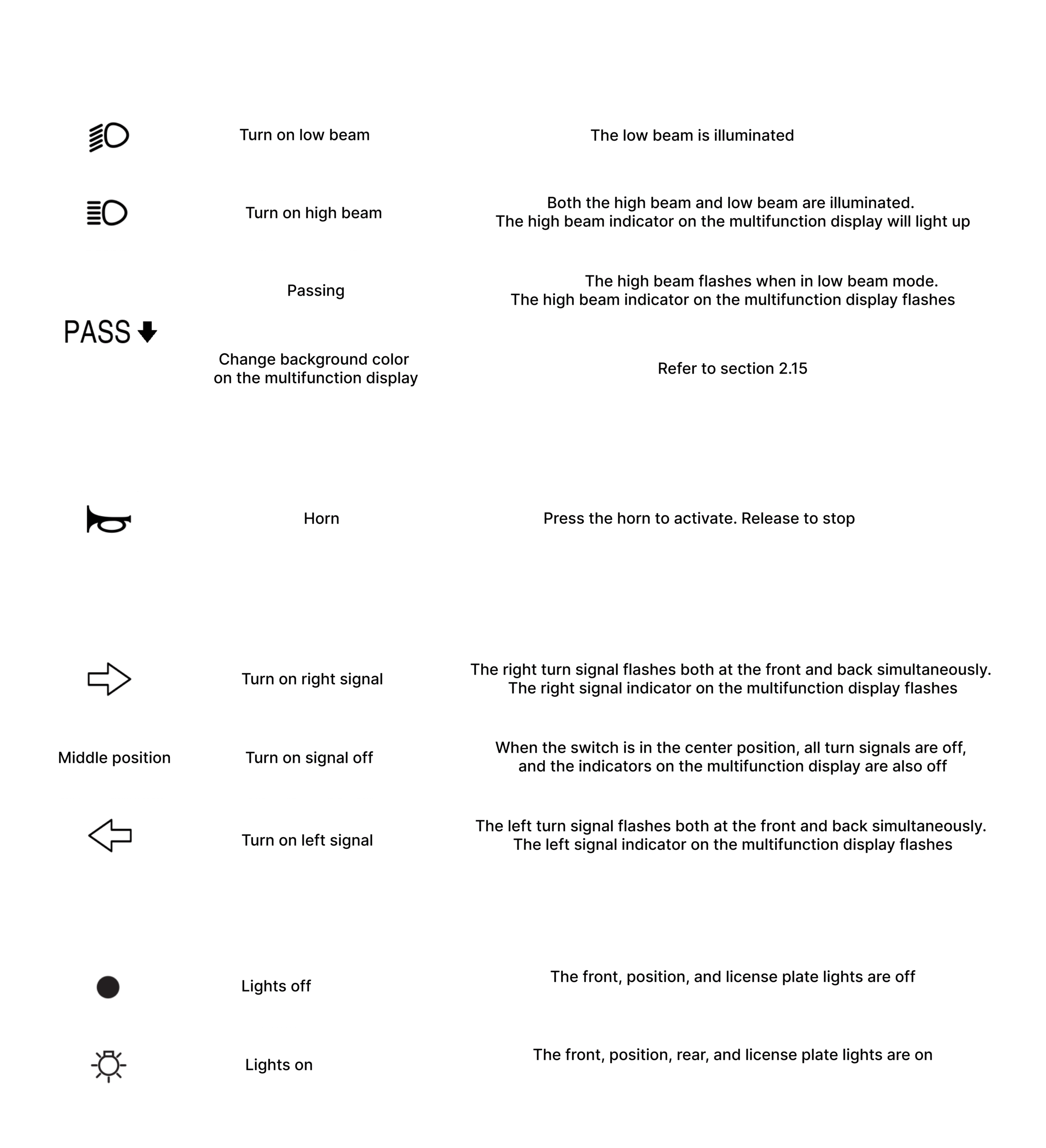 2. Vehicle features and operations