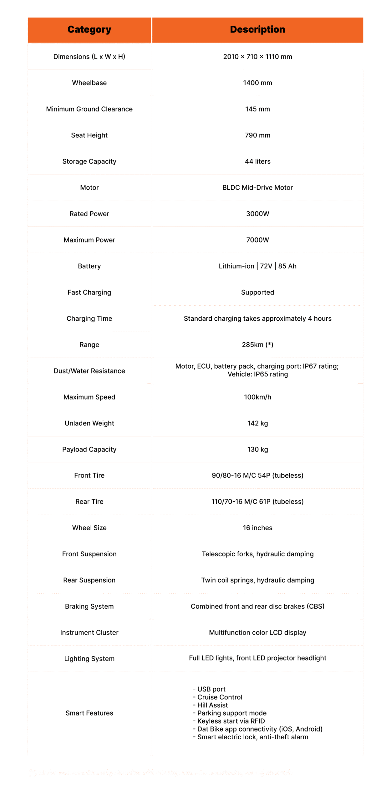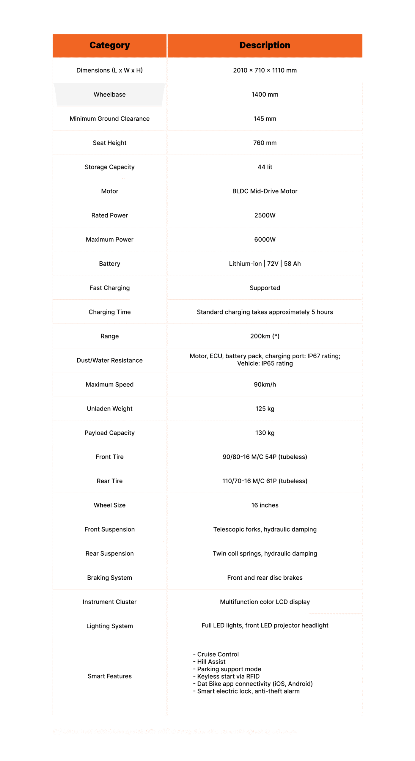 - Do not disassemble or repair the battery yourself, all warranty repair issues related to the battery must be performed by Dat Bike.