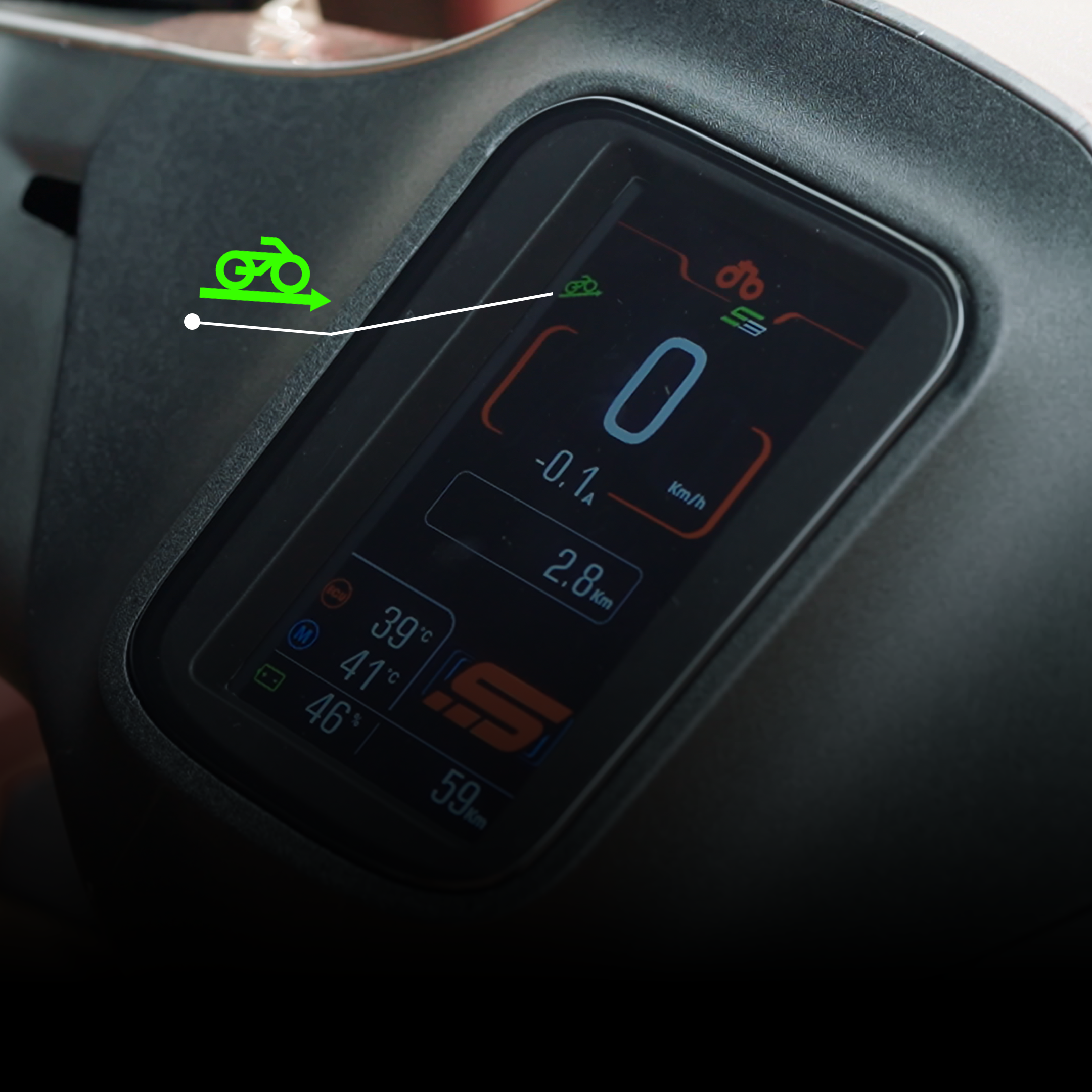 When the bike is going uphill, squeezing and releasing the brake will automatically activate the thrust to prevent the bike from falling behind.