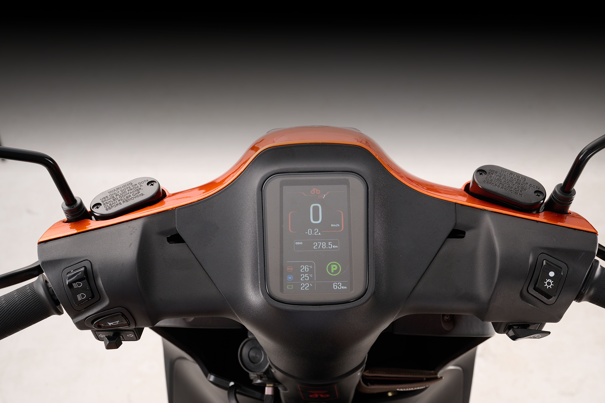 Hydraulic brakes, front and rear discs have been improved synchronously with large front disc size: 245mm Engine brake (regenerative brake) integrated into the throttle. |